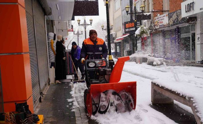 Tokat’ın Erbaa ilçesinde belediye ekipleri etkili olan kar yağışı sonrasında karla mücadele çalışması başlattı.