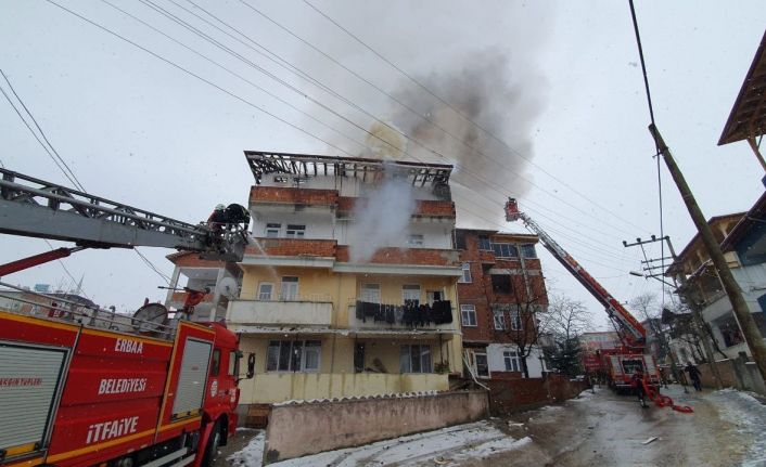 Tokat’ın Erbaa ilçesinde 4 katlı aparmanda çıkan yangın korku dolu anların yaşanmasına neden oldu.