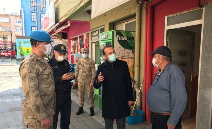 Tokat’ın Erbaa İlçesinde Kaymakam Mustafa Temiz, korona virüs denetimi yaptı
