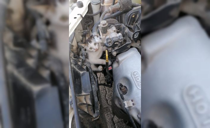Tokat’ta bir otomobilin motor kısmında sıkışan yavru kedi itfaiye ekipleri tarafından kurtarıldı.