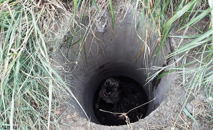 Rögara düşen köpeği itfaiye ekipleri kurtardı