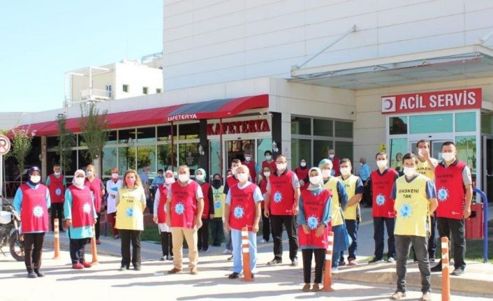 Erbaa Devlet Hastanesinde "Salgın küresel, tedbir ulusal, sorumluluk ise kişiseldir” anlayışı ile sağlıkçılar çalışma yaptı. Maske, mesafe ve temizlik konusunda farkındalık oluşturmak isteyen sağlık çalışanları “maskeni tak, mesafeni koru, ellerini yıka” yazılı kırmızı renkli yelekler giydi. Korona virüs görselinin de yer aldığı yeleklerle hastane de çalışan doktor, hemşire ve çalışanları dikkatleri çekti. Hastane Başhekimi Opr. Dr. Muzaffer Baş, Erbaa Devlet Hastanesi çalışanları olarak tedbirleri içeren sloganlar yazılı kıyafetlerle insanlara mesaj vermeye çalıştıklarını kaydetti.