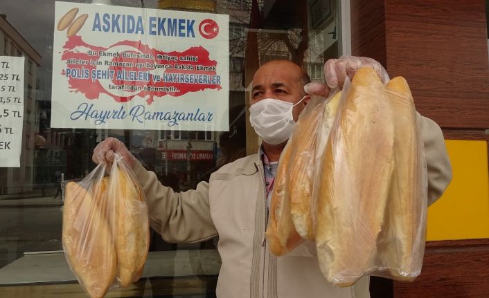 Tokat’ta isimlerinin açıklanmasını istemeyen şehit polis aileleri bir fırınla irtibata geçerek askıda ekmek uygulamasına destek verdi. Eski Niksar yolu kavşağında bulunan ekmek büfesinin camına "Bu ekmek büfesinde, ihtiyaç sahibi aileler için Ramazan ayı boyunca askıda ekmek polis şehit aileleri ve hayırseverler tarafından ödenmiştir" yazısı asıldı. Uygulama kapsamsıda günlük 100 adet ekmek şehit polis ailelerinden 20 ekmek ise fırın işletmesi tarafından ücretsiz olarak ihtiyaç sahiplerine verilmeye başladı. Büfe çalışanı Mustafa Cin, şehit polislerin ailelerinin vermiş olduğu desteğin oldukça anlamlı olduğunu söyledi. Şehit olan polislerin ailelerine verilen maaştan ihtiyaç sahibi ailelere destek verilmesinin onur verici olduğunu belirten Cin, “Ramazan ayı boyunca büfemizden askıda ekmek uygulaması kapsamında ücretsiz ekmek vereceğiz. İhtiyaç sahipleri günlük 3 ekmeği ücretsiz alabilecek. Talep durumuna göre ekmek sayısını artırabiliriz. Şehit ailelerini hayrını rabbim kabul eylesin” diye konuştu.
