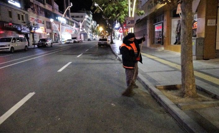 Tokat’ta kısıtlama dolayısı ile sessizliğe bürünen cadde ve sokaklar temizlik görevlilerine kaldı.