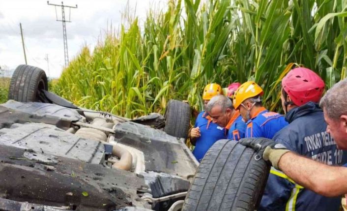 Tokat’ta mısır tarlasına devrilen otomobilin sürücüsü kazayı yaralı olarak atlattı.