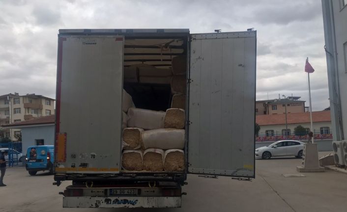 Tır dorsesindeki saman balyalarının arasında 69 göçmen yakalandı