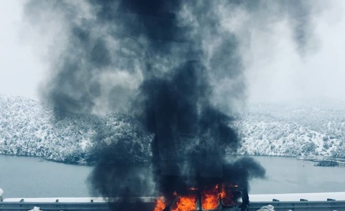 Tokat’ın Erbaa ilçesinde seyir halindeyken alev alan hafif ticari araç yangını maddi hasarla atlatıldı.