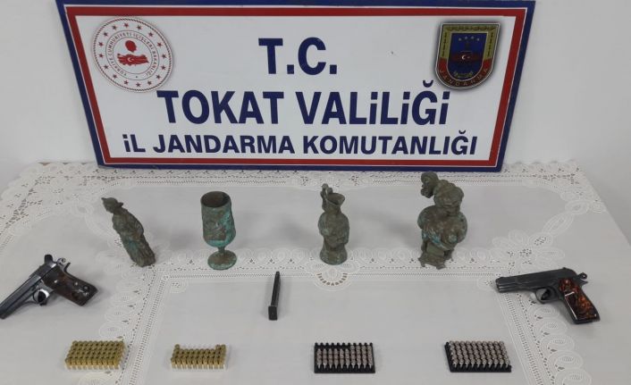 Tokat’ın Zile ilçesinde düzenlenen operasyonda tarihi eser niteliği taşıyan 4 adet obje ile 2 adet tabanca geçirildi.