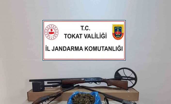 Jandarma ekiplerince, şüpheli iki şahsın ikamet adresinde ve eklentilerinde yapılan arama faaliyetinde; 1 kilo 470 Gr. kubar esrar, 1 adet 9mm çapında tabanca, 1 adet kurusıkı tabanca, 3 adet av tüfeği, 1 adet define arama dedektörü, 38 adet kurusıkı tabanca fişeği, 61 adet tabanca fişeği ve 41 adet av tüfeği fişeği ele geçirildi.