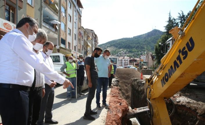 Tokat’ın tarihi mekanlarından Taşhan çevresinde yağmur yağışı sonrasında oluşan su birikintileri ve sele karşı belediye ekipleri alt yapı yenileme çalışmasına başladı. Tokat Belediye Başkanı Eyüp Eroğlu, Fen İşleri Müdürlüğü ekipler tarafından bin 500 metrelik hatta yapılacak olan yağmur ve içme suyu hattı çalışmalarını birim müdürleri ile yerinde inceledi. Yağmur sularının deplase edilmesi konusunda yaşanan sorunların çözülmesi için çalışma yapıldığını ifade eden Başkan Eroğlu, “Özellikle Erenler bölgesi, Ali Paşa Camii noktalarında biriken yağmur suları haliyle belli bir eğimden dolayı da Meydan Camii bölgemizde, Emniyet Müdürlüğü lokalinin bulunduğu o bölgede birikerek sellenmeye sebep oluyordu. Bunların deplasesi sırasında bizler de büyük sıkıntılar çekiyorduk. Şimdi ise yaklaşık bin 500 metrelik yaptığımız bu hatla beraber şehrimizin 4-5 mahallesinden gelen bütün yağmur sularını Behzat Deremize nakletmiş olacağız” dedi.