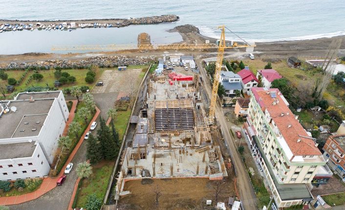 Trabzon’un Akçaabat ilçe Belediyesi tarafından yapımı devam eden Akçaabat Kültür Merkezi inşaatı hızla yükseliyor.