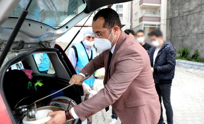Akçaabat Belediye Başkanı Osman Nuri Ekim, ihtiyaç sahibi ailelere sıcak yemek ikram etti.