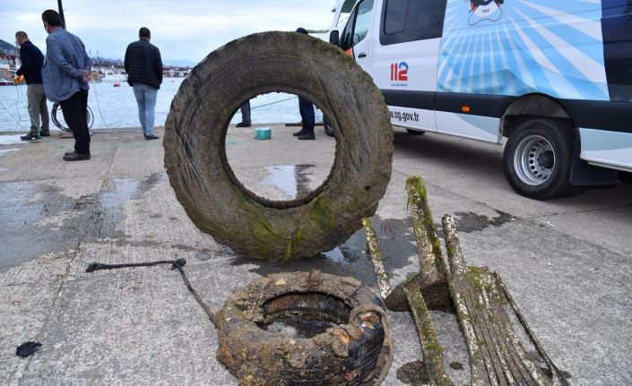 Trabzon’un Ortahisar ilçesinde denizden 7 ton atık madde ve çöp çıkartıldı.