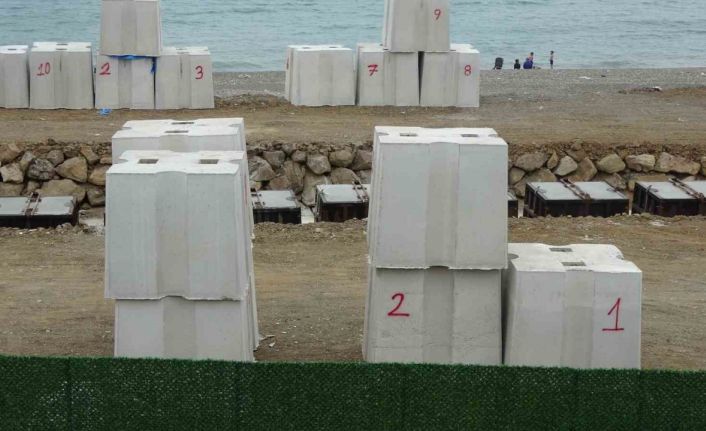 Trabzon’un önemli balıkçı limanlarından Faroz Limanı’nın dev dalgalardan etkilenmemesi için limanın deniz tarafına döşenecek olan dev betonların imalatına başlandı.