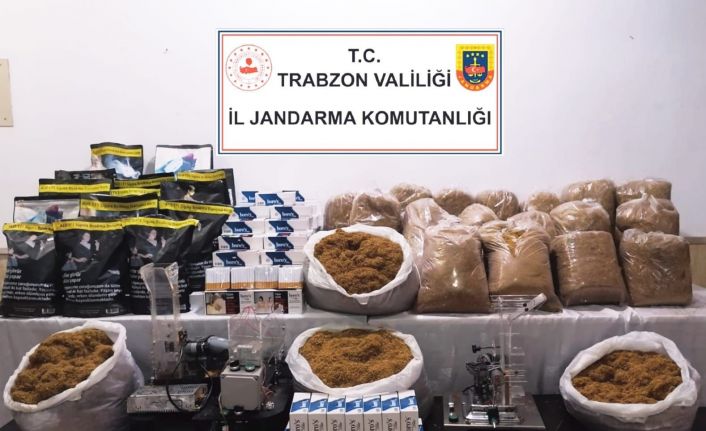Edinilen bilgiye göre, Trabzon İl Jandarma Komutanlığı Kaçakçılıkla Mücadale Timlerinin piyasaya çok sayıda kaçak üretilmiş bandrolsüz sigara sürüldüğünün tespit edilmesi üzerine başlattığı saha ve istihbari çalışmaları sonucu Ortahisar İlçesi İskenderpaşa mahallesinde yaşayan F.K.’nın (51) kendisine ait evde bir odada kaçak sigara üretimi yaparak piyasaya sürdüğü tespit edildi. Evde yapılan aramada 2 adet tam otomatik sigara sarma makinesi 75 Bin 800 adet makaron, 130 kg tütün, 4 bin adet doldurulmuş kaçak sigara ele geçirildi. Şüpheli F.K. hakkında adli ve idari işlemlerin sürdüğü bildirildi.