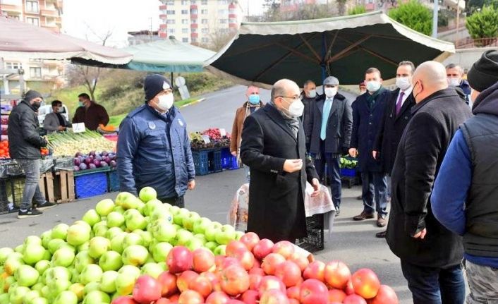 Trabzon Valisi İsmail Ustaoğlu, Korona virüs tedbirleri kapsamında Ortahisar ilçesinde kurulan pazaryerinde denetimde bulundu.