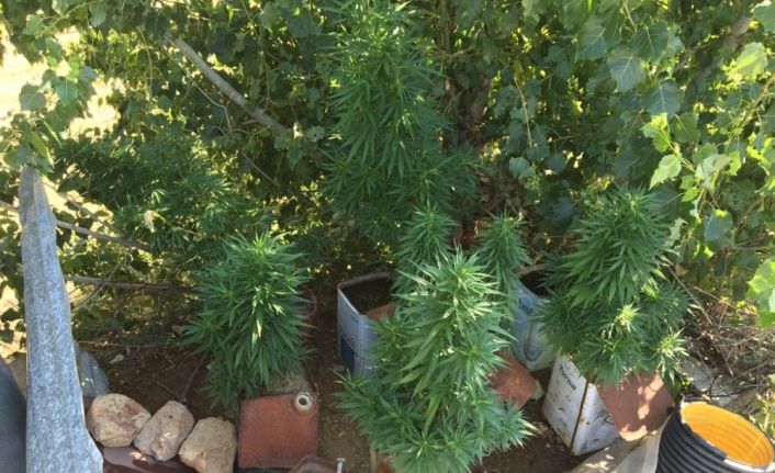 Tunceli’de polisin yaptığı çalışmada teneke kutular ile bir evin bahçesinde yetiştirilen 30 kök keneviri gele geçirildi.