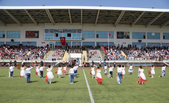 Atatürk Mahallesi’nde valilik önünde bulunan Atatürk Anıtı’na çelen sunulmasıyla başlayan program daha sonra Atatürk Stadyumu’nda devam etti.