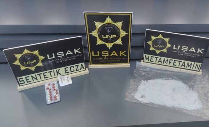 Uşak İl Emniyet Müdürlüğü’ne bağlı Narkotik Suçlarla Mücadele Şube Müdürlüğü ekipleri yapılan denetlemeler sırasında şüphe üzerine bir aracı durdurdu. Araç içerisinde yapılan aramada 100 gram metamfetamin ve 18 adet sentetik ecza hap bulunurken araç içerisindeki 2 şüpheli de gözaltına alındı. Emniyetteki işlemlerinin ardından adliyeye sevk edilen şüpheliler tutuklanarak cezaevine gönderildi.