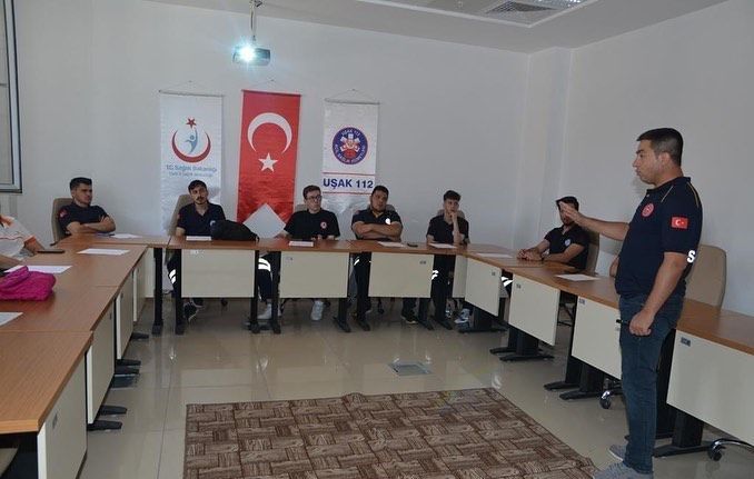 Uşak İl Sağlık Müdürlüğüne bağlı 112 Acil Sağlık Hizmetleri istasyonlarında staj yapmak için kariyer kapısı başvuruları onaylanan Ambulans ve Acil Bakım Teknikerliği Bölümü öğrencilerinin staj serüveni başladı. Yaz stajının ilk gününde, B Sınıfı İSG Uzmanı Mehmet Duran tarafından verilen İş Sağlığı ve Güvenliği Eğitiminde mesleki tehlike ve riskleri anlatıldı. Öğrenciler eğitimde mesleki tehlike ve risklerle baş etme yolları ile uyumlu ekip çalışmasının önemi hakkında bilgilendirildi.