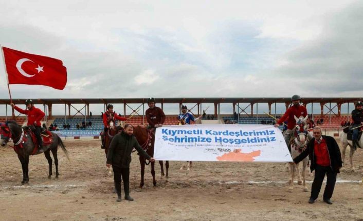 Uşak Belediyesi ve Atlı Cirit Spor Kulüpleri iş birliği ile Uşak’ta misafir edilen depremzedelere moral ve motivasyon olması amacıyla bir cirit gösterisi düzenlendi.