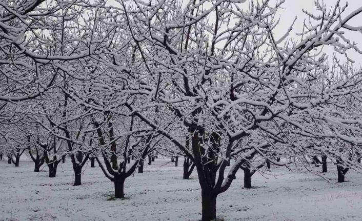 Uşak’ta sabah saatlerinde etkisini gösteren kar yağışı, çiçek açan meyve bahçelerini olumsuz etkilerken hasadı neredeyse imkansız hale getirdi.