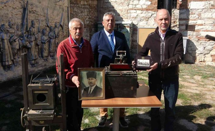 Uşak’ta1933 senesinde çekilen “Cumhuriyeti biz böyle kazandık” isimli tarihi fotoğrafı çeken fotoğraf makinesi ve tab makinesi Uşak Kent Tarihi Müzesi’ne hediye edildi.