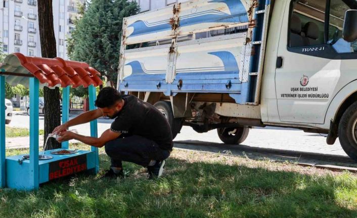 Uşak Belediyesi, sıcak yaz aylarında sokaklarda ve doğada su ve yiyecek bulmaya zorlanan sokak hayvanları unutmadı.