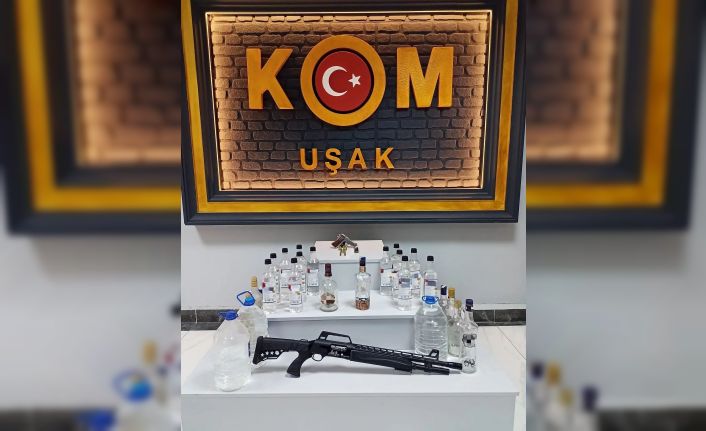 İki kişinin sahte içki üreterek piyasaya sürdüğü yönünde bilgi alan Uşak Emniyet Müdürlüğü KOM Şube Müdürlüğü ekipleri, teknik ve fiziki çalışma başlattı. Bu çalışmalar sonucu bir işyerinde yapılan aramada 13 şişe etil alkol, 5 litre el yapımı votka, 1 şişe sahte rakı, 1 adet tabanca, 13 adet fişek ve 1 adet tüfek ele geçirildi. Olayla ilgili 2 şüpheli yakalandı.