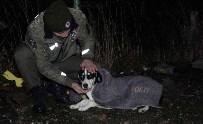 Uşak polisi, sağanak yağmurla birlikte havaların soğumasının ardından sokakta yaşayan kedi ve köpekleri beslerken üstlerine de “Polis” yazılı battaniye örttü.