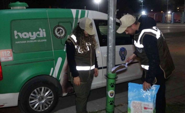 Uşak’ta polis ekipleri havaların soğumasıyla birlikte sokakta yaşayan hayvanların üstlerini battaniyeyle örterken mama kaplarına da mama koyarak sokakta yaşayan canlıları unutmadı.