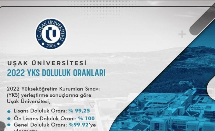 YÖK tarafından açıklanan 2022 YKS sonuçlarına göre, Uşak Üniversitesi kontenjanlarının tamamı yüzde 100 lük doluluk oranına ulaştı.