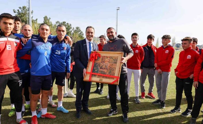 Müdür Şahin, Teknik Direktör Ümit Karan’a çini bir pano hediye etti.