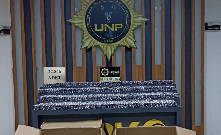 Uşak’ta Narkotik Suçlarla Mücadele Şube Müdürlüğü ekipleri, gerçekleştirdiği bir operasyonda 27 bin 846 adet sentetik ecza ele geçirdi.