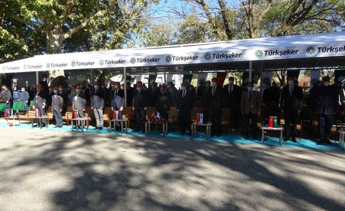 Düzenlenen programa Uşak Valisi Funda Kocabıyık, Uşak Adalet ve Kalkınma Partisi ( AK Parti) Milletvekili Mehmet Altay, Uşak Belediye Başkanı Mehmet Çakın, Uşak İl Jandarma Komutanı Albay Murat Kılıç, Uşak İl Emniyet Müdürü Mesut Gezer, Fabrika Genel Müdür Yardımcısı Ayhan Tanrıverdi, Şeker İş Şube Başkanı Yaşar Taylan, Fabrika Müdürü Mehmet Zararsız, il müdürleri ve fabrika yetkilileri katıldı. 1 dakikalık saygı duruşu ve İstiklal Marşı’nın okunmayasıyla başlayan programda konuşan Nuri Şeker Fabrikası Müdürü Mehmet Zararsız, 54 köyde 901 çiftçi ailesiyle 168 bin ton üretim kotası sözleşmesi yaptıklarını belirtirken 3 mart 2021 tarihinde başlanılan pancar ekimlerinin 21 bin 600 dekar alanda yapıldığı ve 18 mayıs 2021 tarihinde tamamlandığını belirtti. Çiftçilere bu zamana kadar 11 Milyon TL avans ödemesi yaptıklarını da belirten Zararsız, ödemelerin devam edeceğinin de altını çizdi. Sözlerine devam eden Zararsız, “Fabrikamız pancar işlemesine 8 Ekim tarihinde başlayacak olup, 24 saatte 3 vardiya ortalama bin 800 ton pancar işlenecek ve kampanyamız yaklaşık olarak 64 gün devam edecektir. Bu kampanya döneminde 115 bin ton civarında pancar işlenecek 15 bin ton kristal şeker ile yan ürün olarak maya ve yem sanayisi için önemli olan 5 bin ton melas, yöremiz hayvan beslenmesinde önemli yer tutan 32 bin ton yaş pancar posası üretiminin gerçekleştirilmesi hedeflenmektedir” şeklinde konuştu