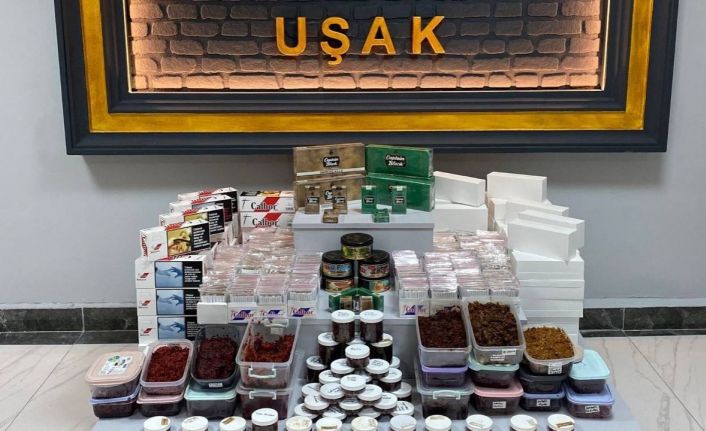 Uşak’ta KOM ekiplerinin şehir merkezinde kaçak sigara ve tütün sattığı iddia edilen iş yerinde yapılan aramada, yüksek miktarda kaçak ütün ele geçirildi.