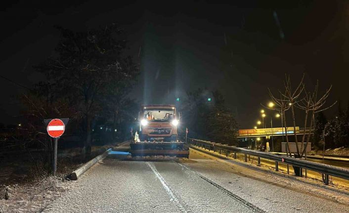 Uşak’ta hava sıcaklığının düşmesinin ardından kentin birçok noktasında kar yağışı etkili olurken, ekipler aralıksız tuzlama ve kar küremeye yapıyor.