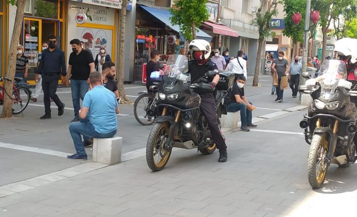 Uşak’ta İsmet Paşa Caddesi’nde yaşanan yoğunluk nedeniyle Motosikletli Polis Timleri sahaya çıkarak vatandaşları maske ve sosyal mesafe konularında uyardı.