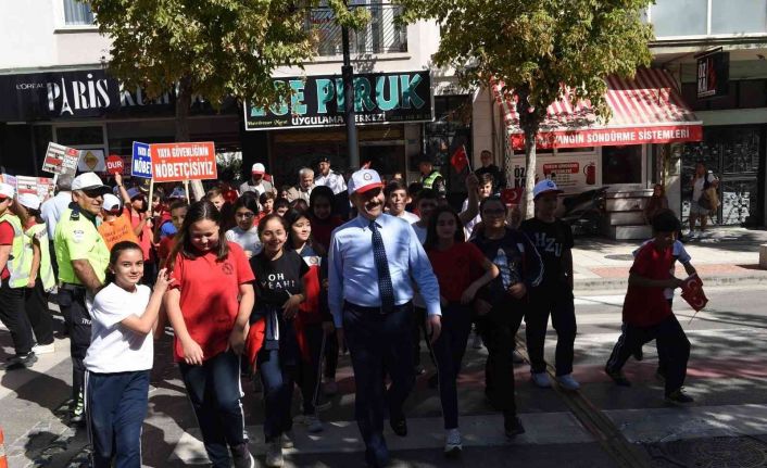 Uşak Valisi Turan Ergün, Halit Ziya Uşaklıgil Ortaokulu önünde “Yayalara Öncelik Duruşu, Hayata Saygı Duruşu” mottosuyla düzenlenen “Önce Yaya” farkındalık etkinliğine katıldı.