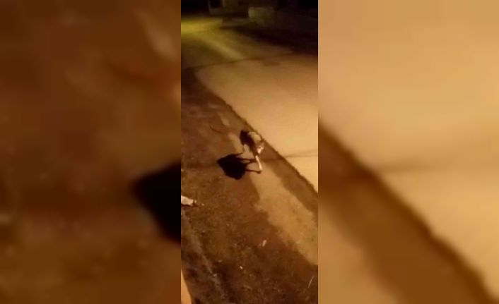 Van’ın Gevaş ilçesinde yiyecek bulmak için yerleşim alanına inen kurt korkuya neden oldu.