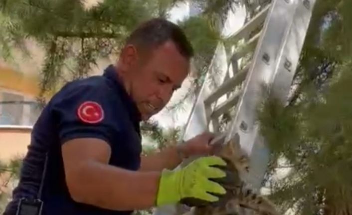 Ağaçta mahsur kalan yavru kedi kurtarıldı
