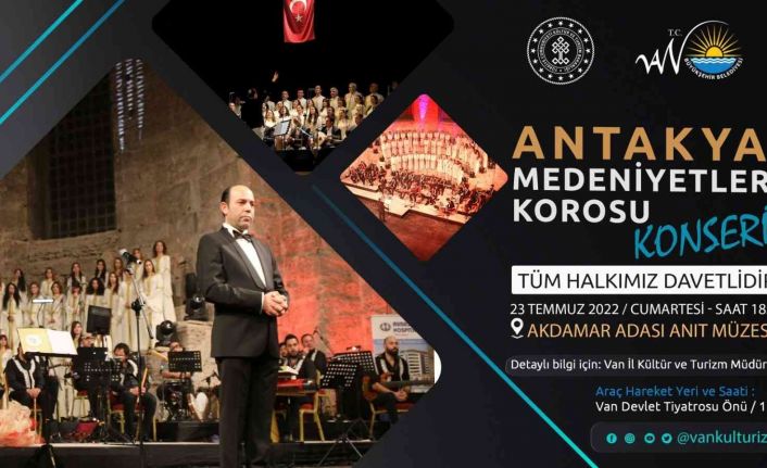 Van’ın dünyaca ünlü tarihi mekânlarından biri olan Akdamar Adası, 23 Temmuz’da Antakya Medeniyetler Korosu’na ev sahipliği yapacak. İl Kültür ve Turizm Müdürlüğü organizasyonunda Van Büyükşehir Belediyesinin desteğiyle Akdamar Adası’nda saat 18.00’da düzenlenecek olan konserde, Antakya Medeniyetler Korosu sanatseverlerle buluşacak.