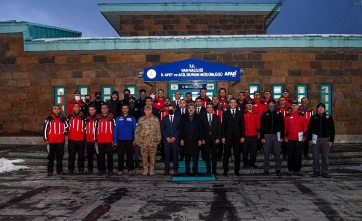 AFAD Van İl Müdürlüğünün toplantı salonunda yapılan törene Van Valisi ve Büyükşehir Belediye Başkan Vekili Mehmet Emin Bilmez, Van İl Jandarma Komutanı Tuğgeneral Hüseyin Bekmez, İl Emniyet Müdürü Atanur Aydın, vali yardımcıları Ömer Faruk Canpolat, Yavuz Arslan, Adem Balkanlıoğlu ve Hamit Genç, AFAD Van İl Müdürü Ali İhsan Körpeş, ilgili birim amirleri ve arama kurtarma ekipleri katıldı.