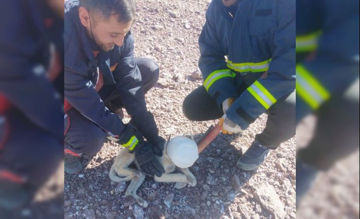 Van’ın Özalp ilçesinde başı plastik bidona sıkışan köpeği itfaiye ekipleri kurtardı.