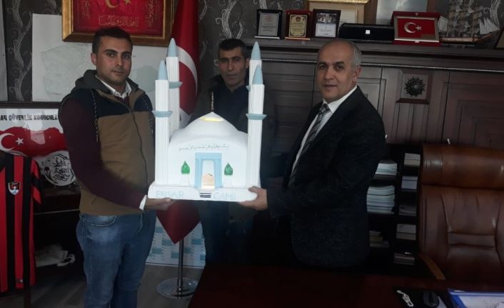 Van’ın Çaldıran ilçesinde yaşayan iki genç, 3 bin kişi kapasiteli Merkez Cami’nin maketini yaparak Belediye Başkanı Şefik Ensari’ye hediye ettiler.