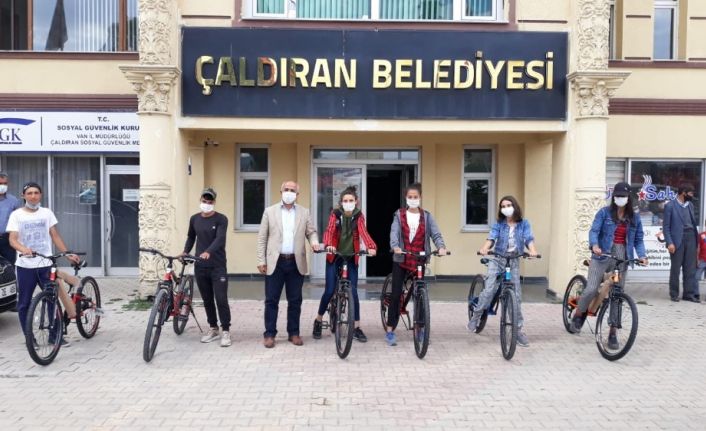 Van’ın Çaldıran Belediye Başkanı Şefik Ensari, Türkiye geneli yapılan yarışmalarda dereceye giren atletleri makamında ağırlayarak bisiklet hediye etti.