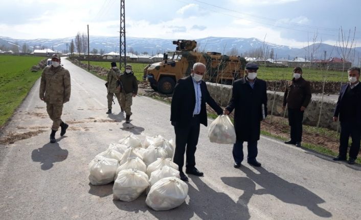 Çaldıran ilçesine bağlı Salahane Mahallesi’nde il dışından gelen 1 kişinin korona virüs testinin pozitif çıkması nedeniyle 316 hane ve bin 316 nüfuslu mahalle İlçe Hıfzıssıhha Kurulu kararıyla karantinaya alınmıştı. Çaldıran Belediye Başkanı Şefik Ensari, ilçeye 30 kilometre uzaklıkta bulunan Salahane Mahallesi muhtarı ile mahallenin girişinde bir araya gelerek dezenfaktan malzemelerini teslim etti. Mahallenin genel ihtiyaçları konusunda bilgiler alan Başkan Ensari, karantina altında olan mahalleli kardeşlerinin yanında olduğunu söyledi. Başkan Ensari, ”İl dışından ilçemize gelinerek korona virüs salgını bulaştırılan üçüncü mahallemizdir. Karantina sürecinde Çaldıran Belediyesi olarak bu üç mahallemizdeki muhtarlarımızla bir araya geldik sorun ve taleplerini dinledik. Karantinaya alınan Salahane’deki kardeşlerimize dezenfektan malzemelerini Karantinadan dolayı güvenlik noktasında muhtar ve heyetlerine teslim ediyoruz. Bu pandemiden kurtulmanın tek yolu evde kalarak sosyal mesafe kurallarına uymaktan geçer” dedi.
