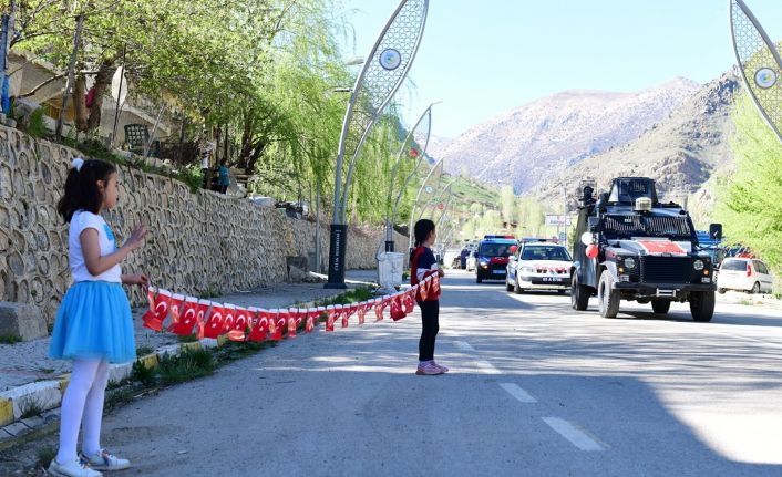 İlçe Emniyet Müdürlüğü, İlçe Jandarma Komutanlığı, Çatak Belediyesi, Milli Eğitim Müdürlüğünün araçlarından oluşan konvoy, 23 Nisan Ulusal Egemenlik ve Çocuk Bayramı kutlamaları için siren çalarak ilçede tur attı.
