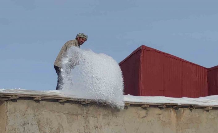 Çatak’ta kar mesaisi: Vatandaşlar damlarda kar temizlemeye başladı
