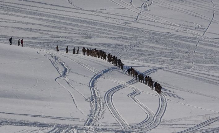 Çığ timi güvenlik korucuları, Van-Hakkari karayolu Kurubaş Geçidi’nin zirvesinde olası çığ facialarına karşı eğitim alıyor.